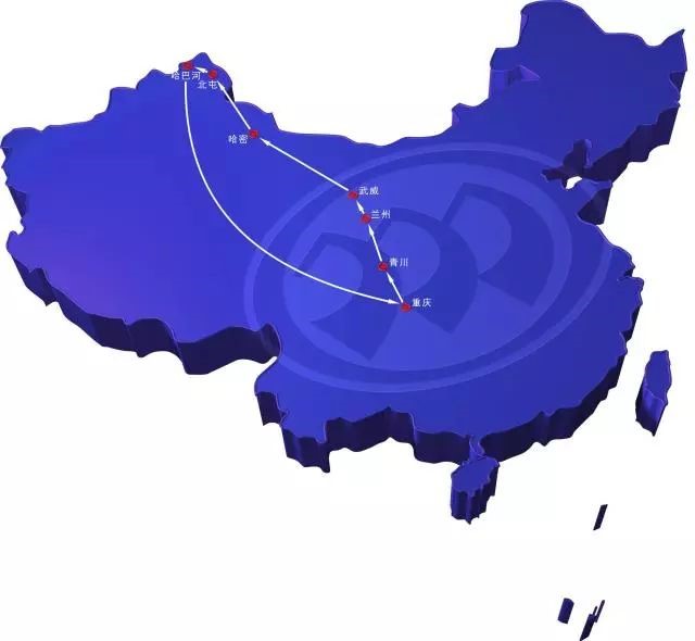 ▲測試組自重慶出發(fā),經(jīng)四川青川縣、甘肅蘭州市、武威市,經(jīng)新疆哈密市、北屯市,最終抵達(dá)哈巴河縣,后返回重慶。